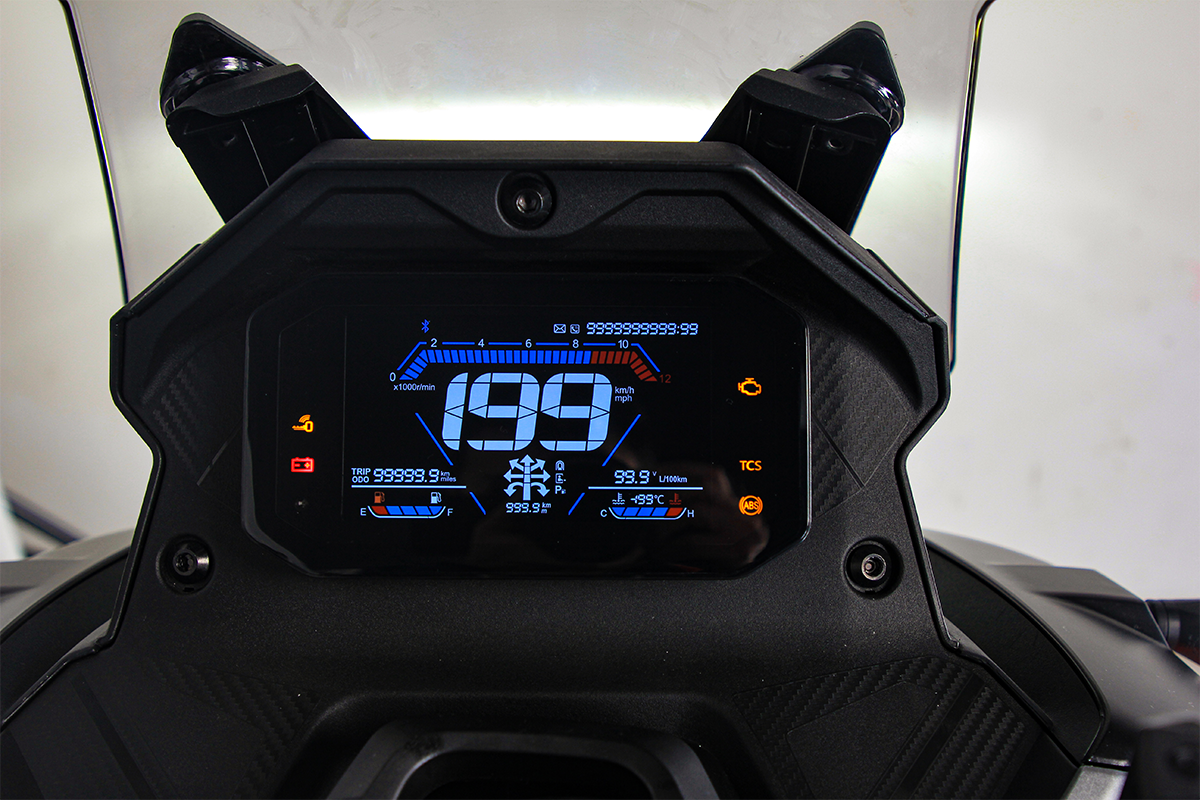 A partir del innovador motor EFI de última generación con refrigeración líquida del popular Voge SR1, este modelo se presenta con una estética más agresiva, parabrisas regulable eléctricamente, suspensiones de mayor recorrido con amortiguadores de gas, depósito de mayor capacidad para aumentar la autonomía, neumáticos mixtos y nuevo panel de instrumentos con pantalla a color, conexión con el móvil y navegación GPS simplificada “turn-by-turn”.